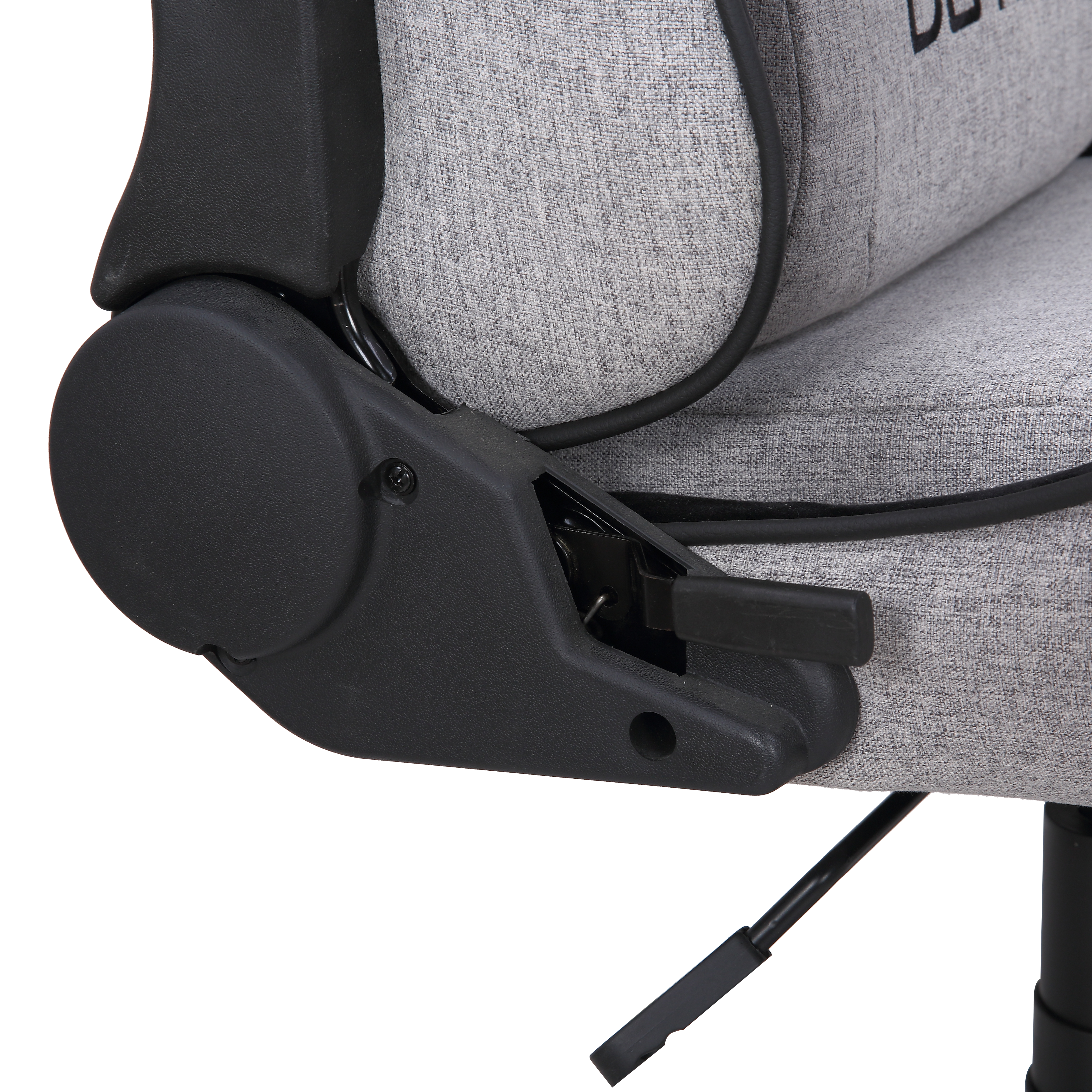 Gaming chair with great ergonomic design, including soft padded headrest and lower back pillows. The E-Sport V2 Fabric is the successor to the award winning E-Sport model and is now upgraded with a taller gas lift, so it remains as a smaller chair then our other DUTZO models, but keeps the same inspiration from racing chairs with ergonomically designed side edges for supporting your lower back region and shoulders, for better support we've included two pillows allowing you to find your ideal position. E-Sport chairs are sturdy built and ready for many hours gaming your favorite games as it's body is made with a solid metal skeleton, Fabric, double inner stitching, market leading class 4 gas lifts and black nylon base with 60mm wide wheels. E-Sport has 2 dimensional armrests, is tiltable with 30 degrees and the backrest can be angled 90 degrees, so you definitely find your own seat position for many hours of gaming or even a fast nap between gaming sessions! Height adjustable with 10 cm high gas cartridge (larger gas cartridges are available). The E-Sport is recommended for people up to 185 cm high and max 120 kg is supported.