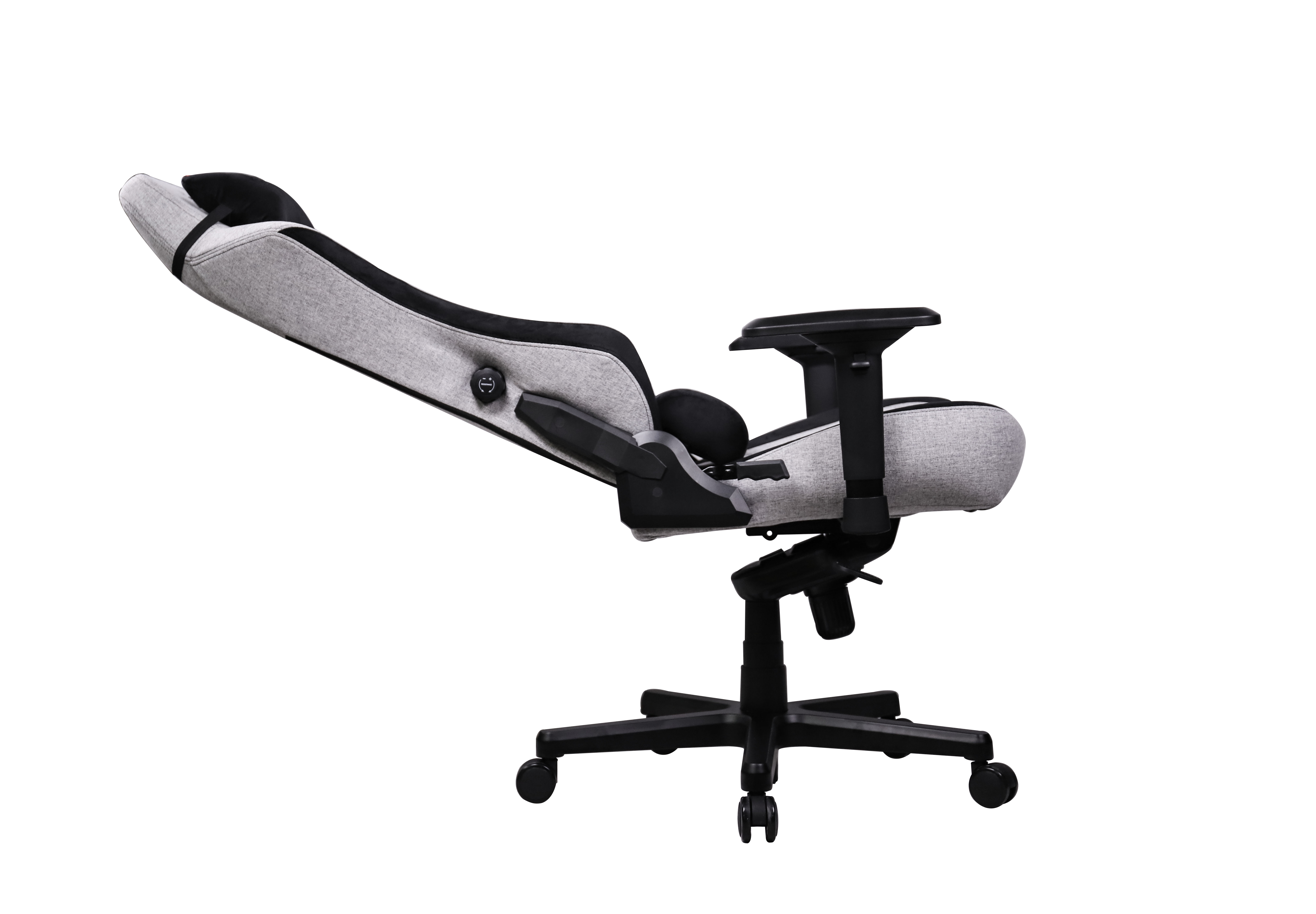 Office / Gaming chair with a stylish design and unique new backrest with integrated backrest positioning, by simply adjusting the knob you'll easily find your favourite position. Premio XL Fabric is stylish for both office- and gaming use with it's breathtaking design, created from fabric. Premio XL Fabric combines the design aspects from racing seats and traditional office chairs, with defined structure and support to your body but without sharp corners like racing inspired chairs. Premio XL Fabric is built to last and is based on a solid metal skeleton, fabric and double inner seams and has improved padding to keep the shape of the chair intact for years, market leading class 4 gas lifts and a strong metal base with large 75mm wide wheels. Premio XL Fabric has 4 dimensional armrests, 12 degrees tilt function, and the backrest can be angled 90 degrees, so you definitely find your own seat position for many hours of gaming or a quick nap! Colour: Grey & Black