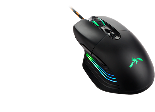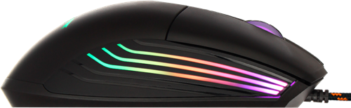 Gaming mouse, optisk sensor - Pixart 3325, 7 programmable buttons, 200 - 5000 dpi settings, 125 - 1000 Hz changeable polling rate, 1.8 meter braided cable, USB connection, suitable for right handed use, weight: 83 black with RGB light