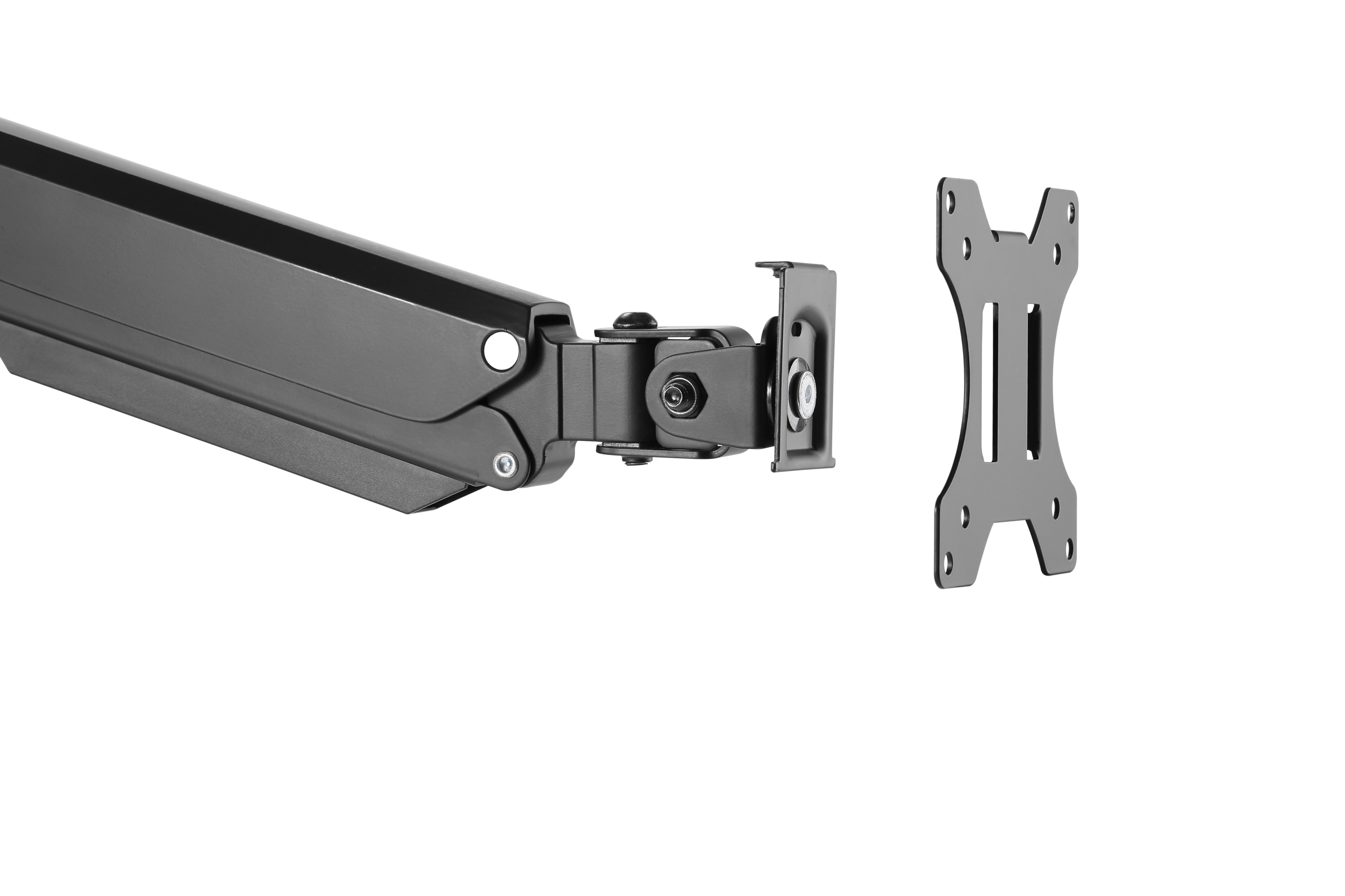 • Strong and Stable Construction: The monitor arm is made from robust steel and aluminum, making it durable and capable of supporting screens up to 27" and a maximum weight of 7 kg.