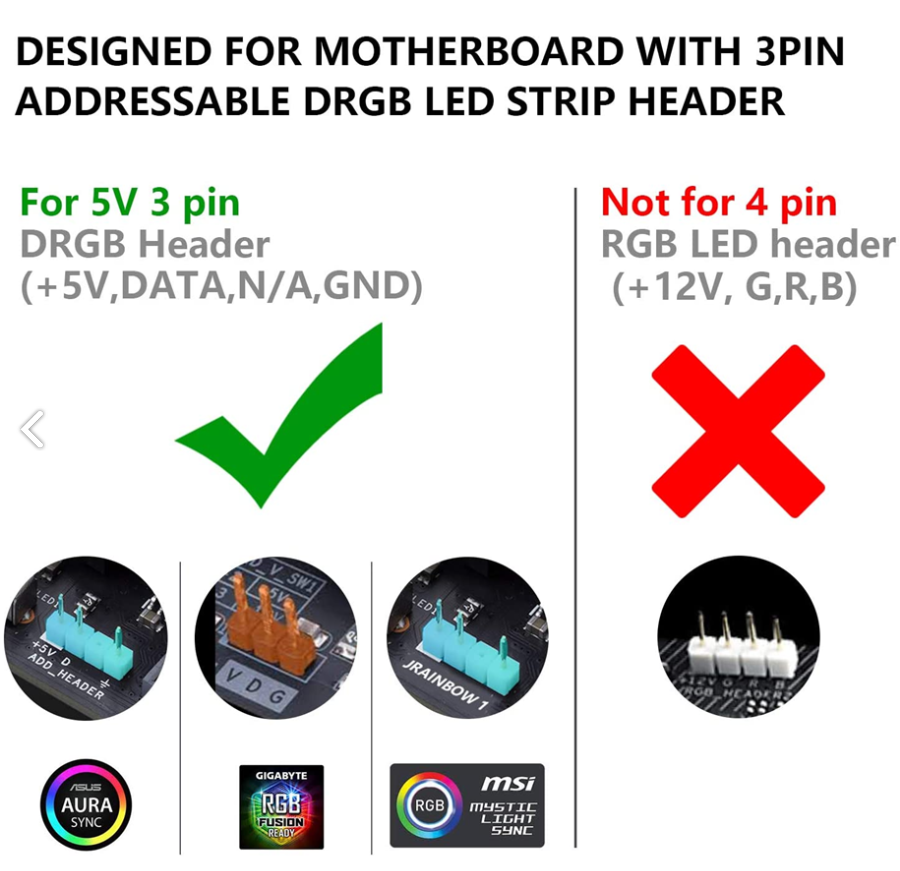 Addressable RGB strip (Digital RGB) - 5 volt, compatible with ASUS Aura Sync, Asrock Polychrome Sync, Gigabyte Fusion RGB & MSI Mystic Light, 18 LED lights, when connected with only SATA without 3-pin ARGB connector it will light up in rainbow colors, 30cm. Premium RGB Strip which gives a diffused premium look. Unlike traditional RGB Strips each LED is not visible at this product and will provide more uniform lightning.
