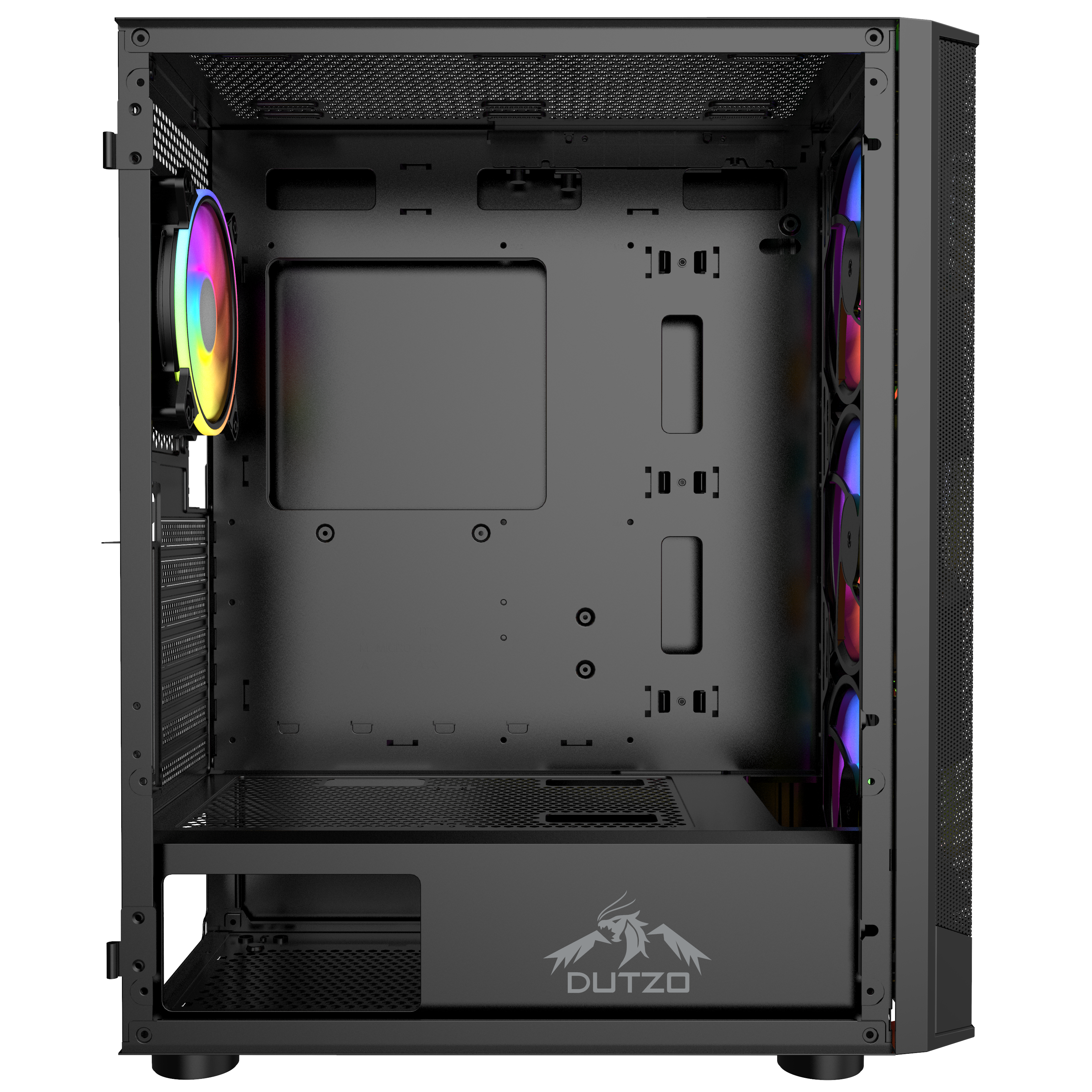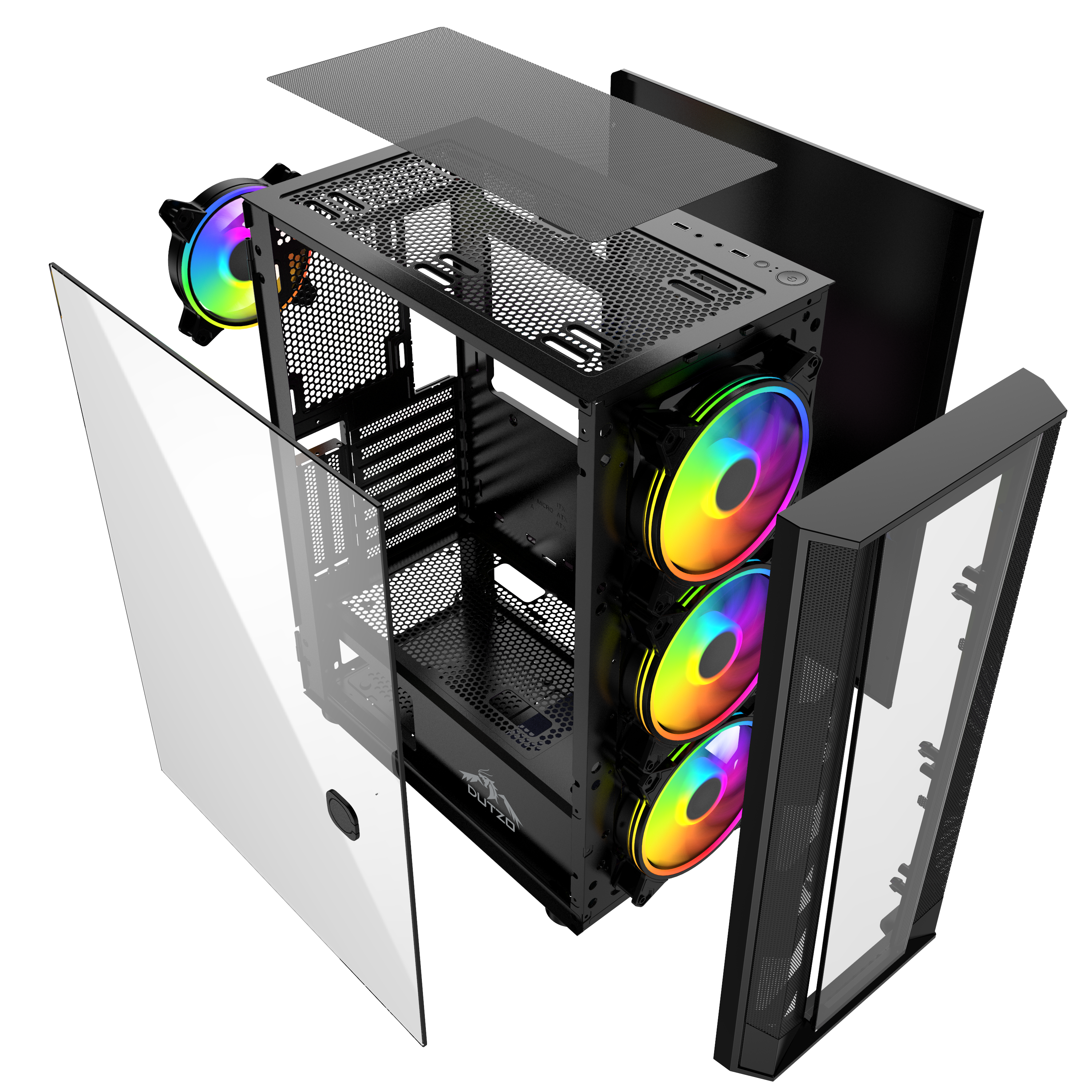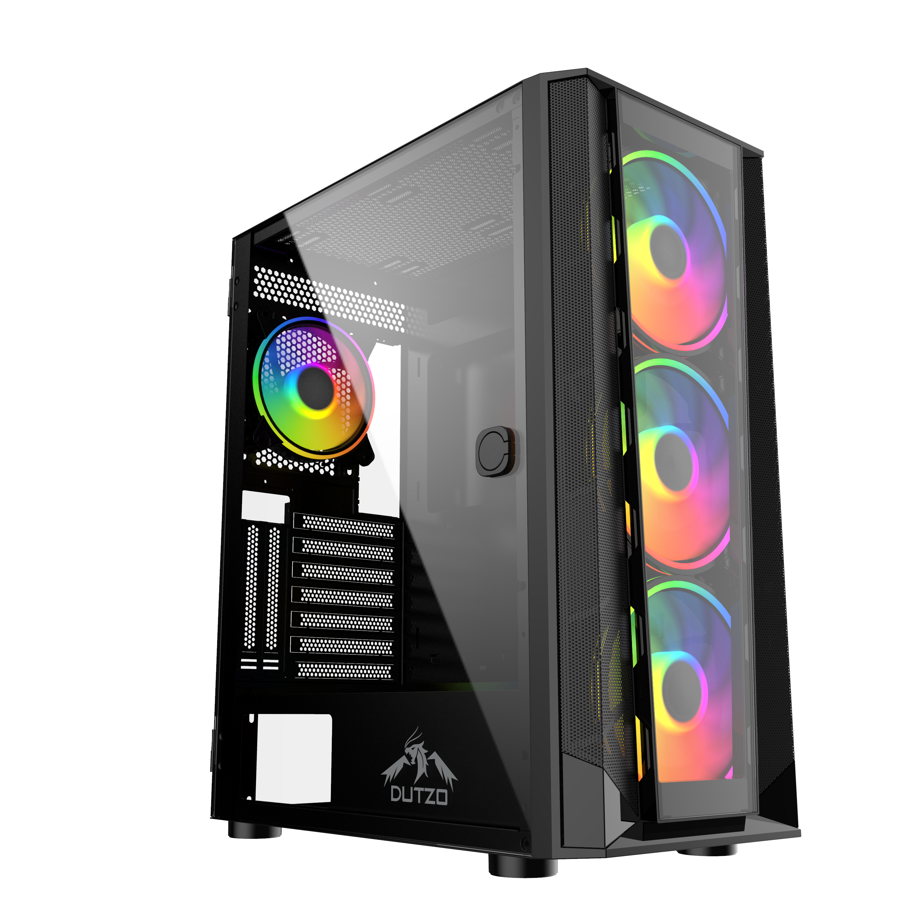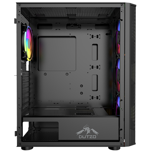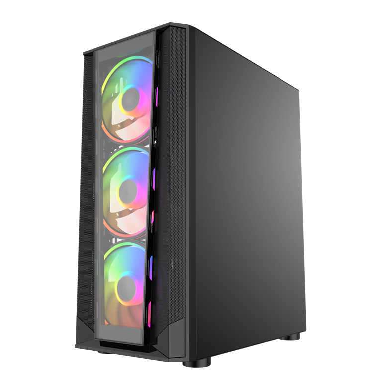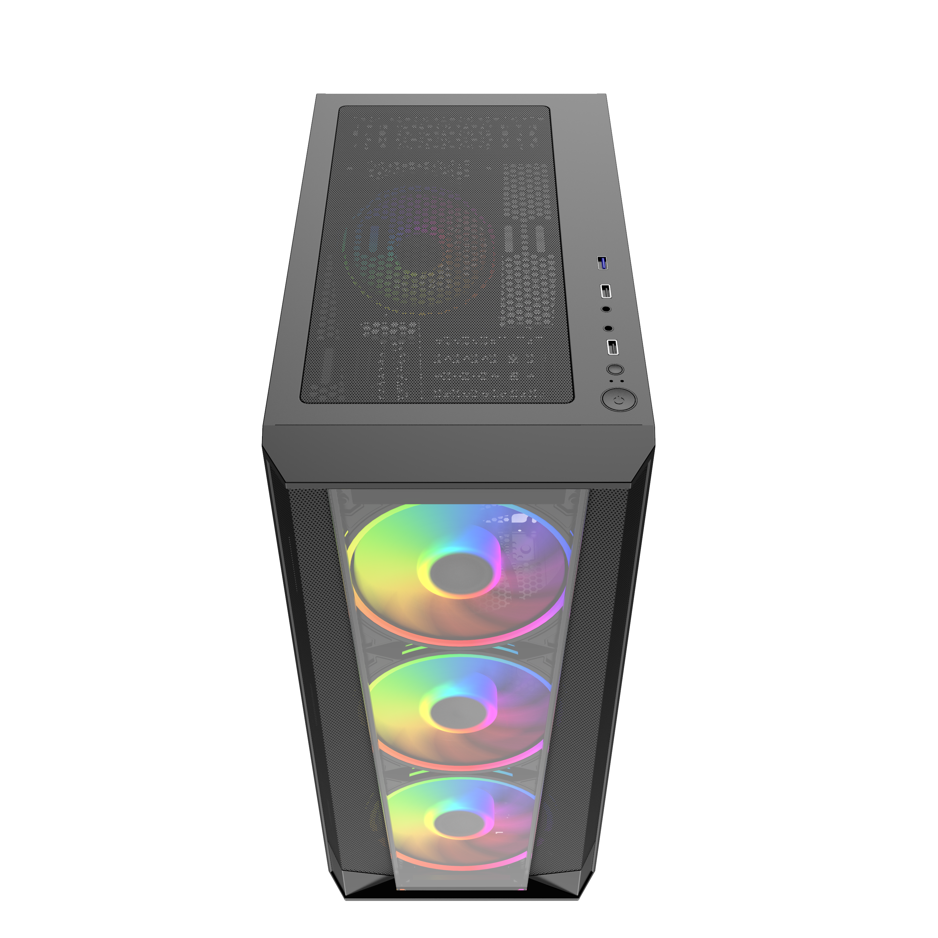 With 3x powerful ARGB 140mm front fans and a large mesh area it delivers exceptional airflow. In the back it features a 4th ARGB RGB fan. All four fans can be controlled by either your favorite software or by the RGB button at the top.