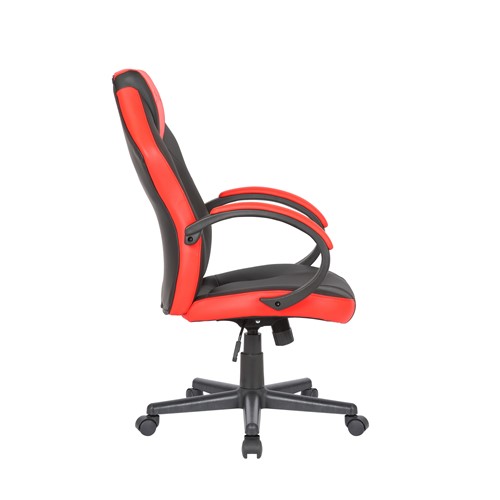 Gaming chair created for children with up 160 cm height, but supports up to 120 kg so parents can take a quick gaming session in it. The chair has fixed, foam padded arm rests, durable faux leather with 0.8mm thickness, double inner stitching, market leading class 4 gas lifts and black nylon base with 50mm wide wheels and is tiltable with 12 degrees. Height adjustable with 8 cm high gas cartridge (larger gas cartridges are available). The Tanaka is recommended for people up to 160 cm high and max 120 kg is supported.