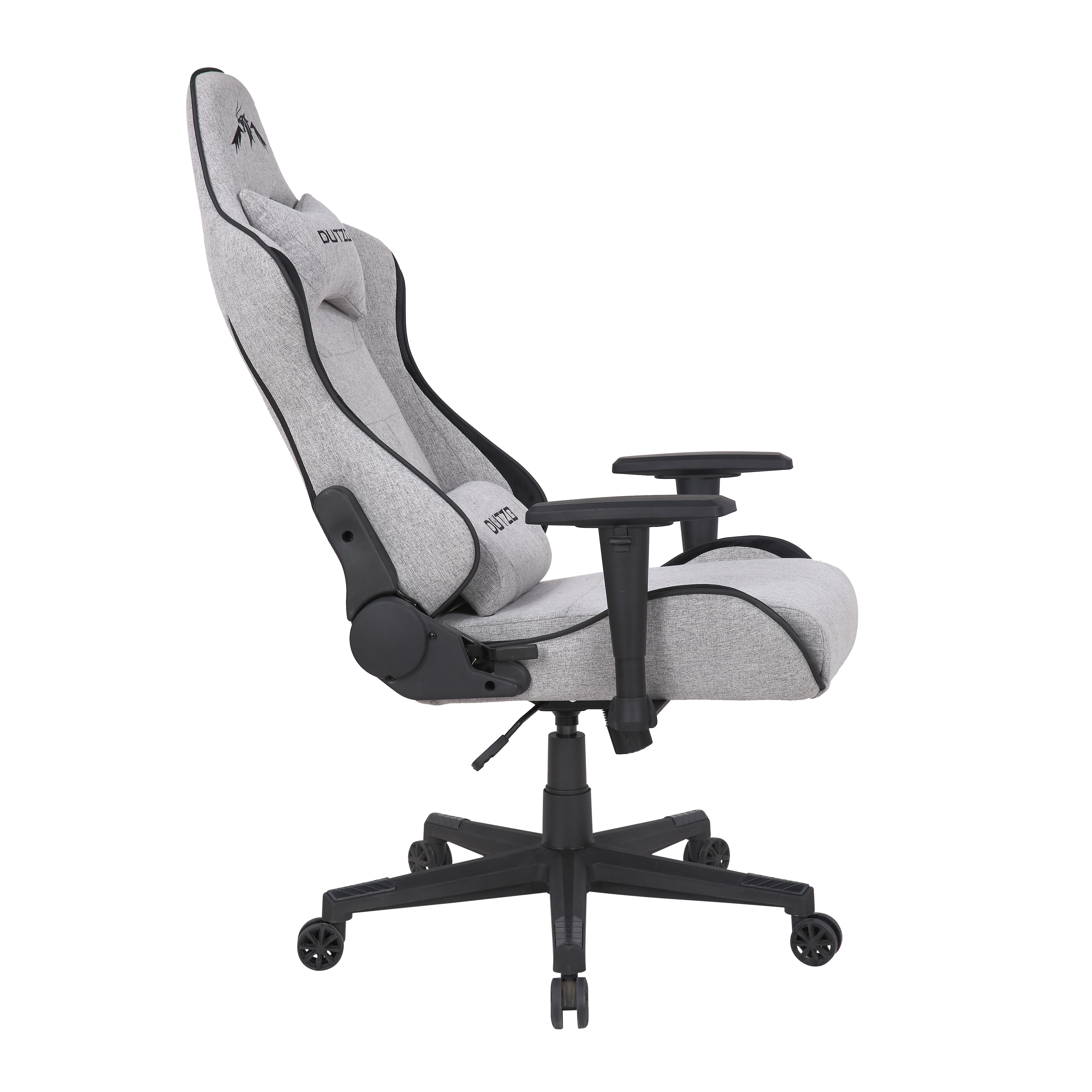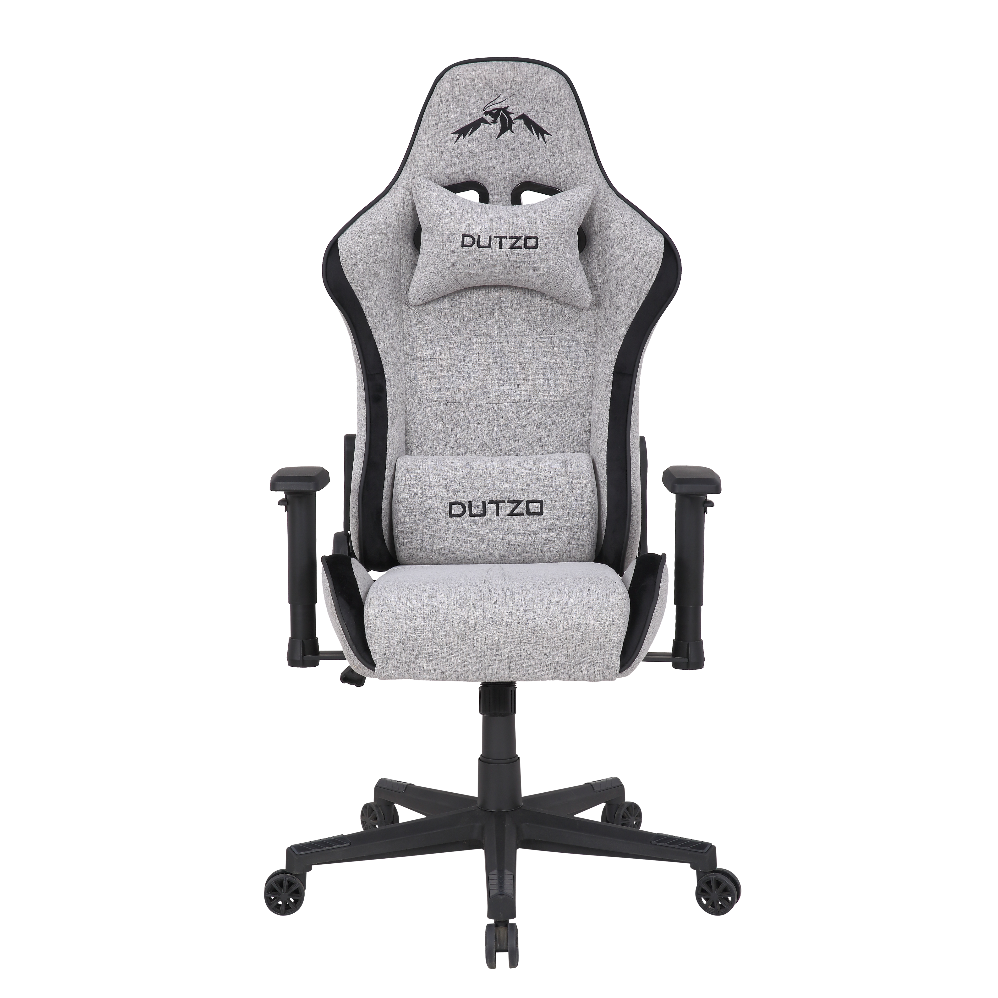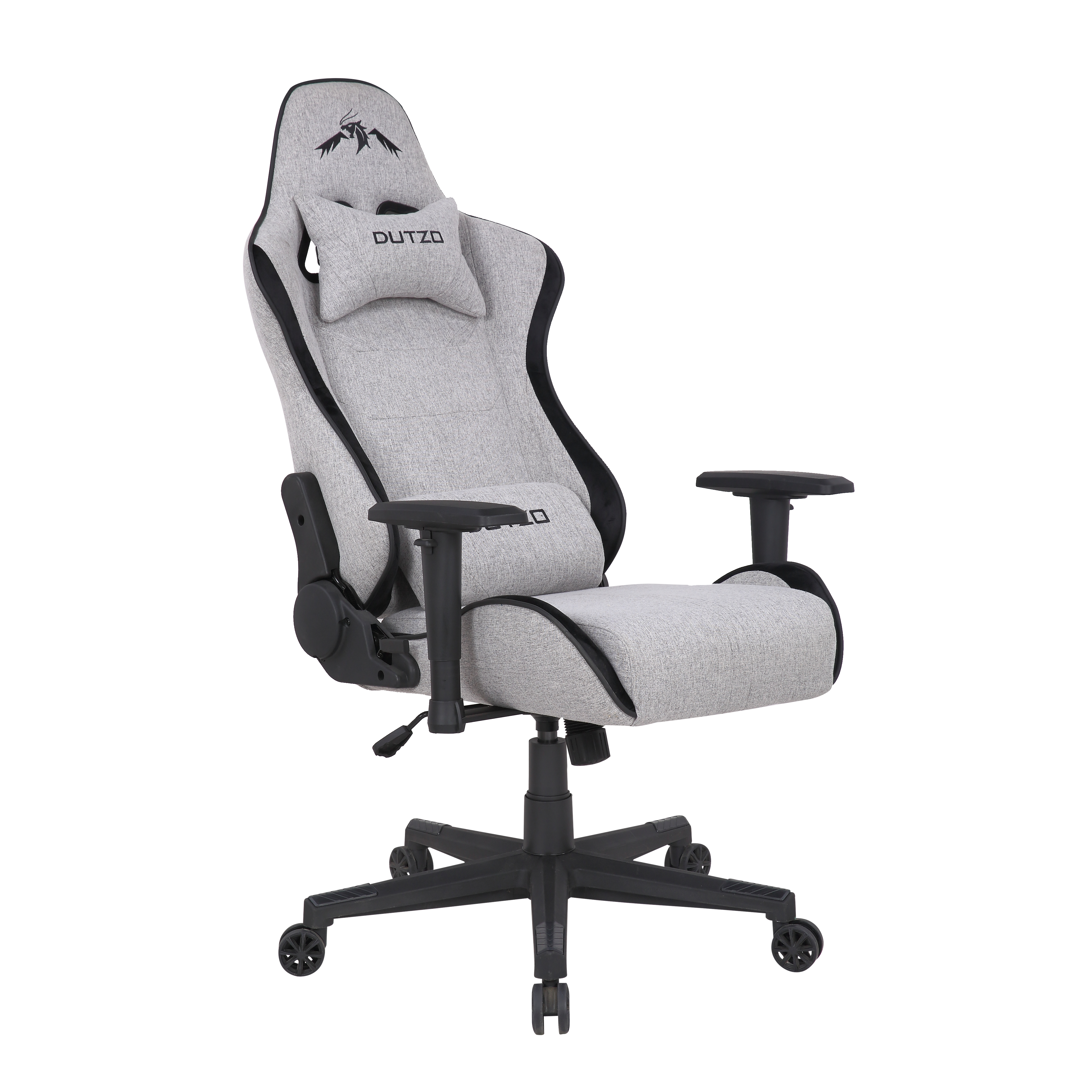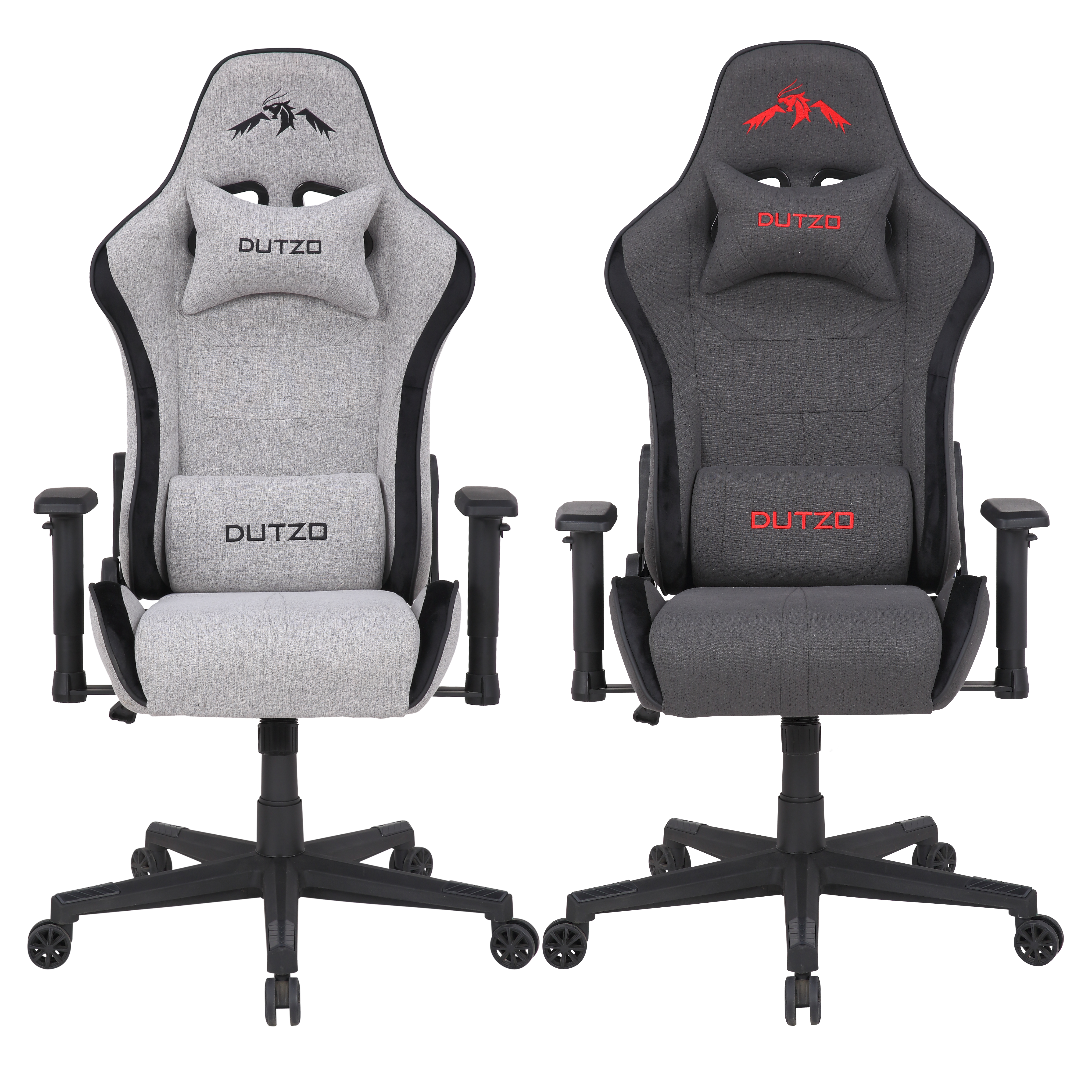 Gaming chair with great ergonomic design, including soft padded headrest and lower back pillows. The E-Sport V2 Fabric is the successor to the award winning E-Sport model and is now upgraded with a taller gas lift, so it remains as a smaller chair then our other DUTZO models, but keeps the same inspiration from racing chairs with ergonomically designed side edges for supporting your lower back region and shoulders, for better support we've included two pillows allowing you to find your ideal position. E-Sport chairs are sturdy built and ready for many hours gaming your favorite games as it's body is made with a solid metal skeleton, Fabric, double inner stitching, market leading class 4 gas lifts and black nylon base with 60mm wide wheels. E-Sport has 2 dimensional armrests, is tiltable with 30 degrees and the backrest can be angled 90 degrees, so you definitely find your own seat position for many hours of gaming or even a fast nap between gaming sessions! Height adjustable with 10 cm high gas cartridge (larger gas cartridges are available). The E-Sport is recommended for people up to 185 cm high and max 120 kg is supported.