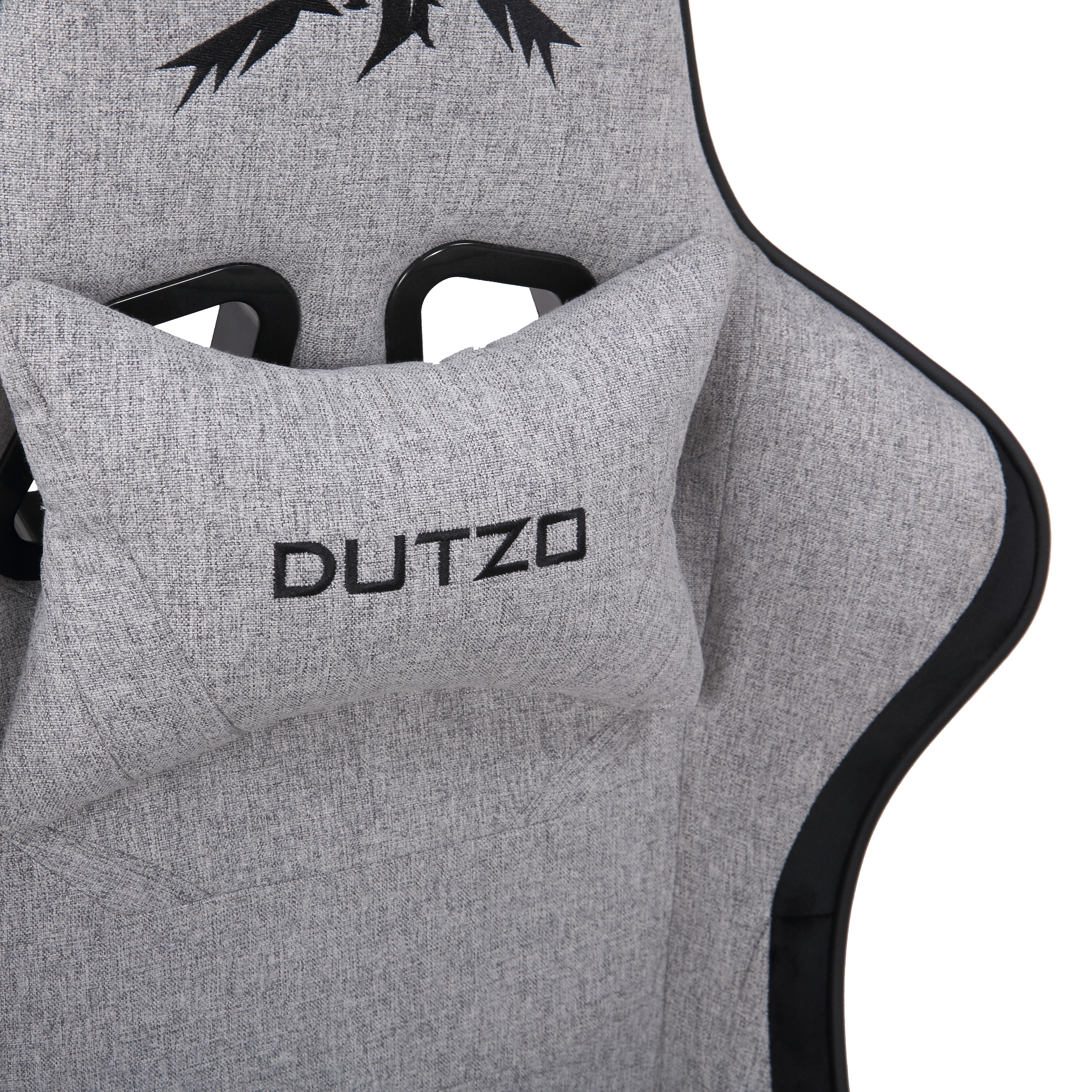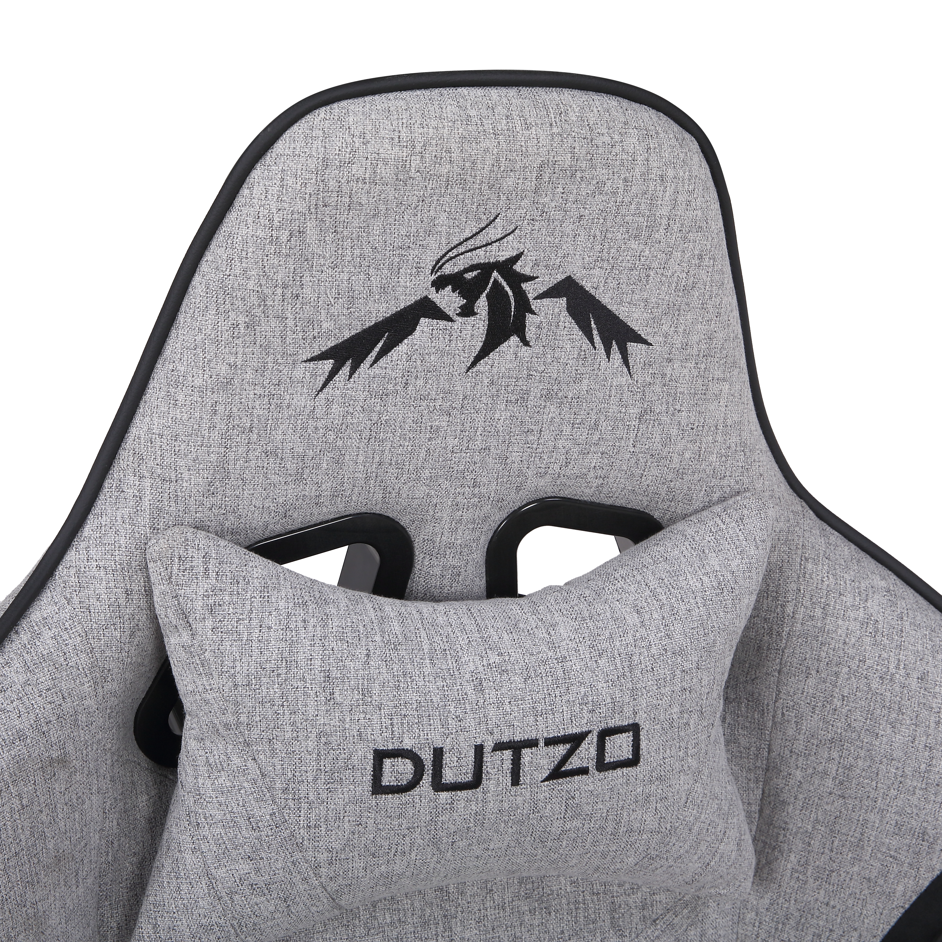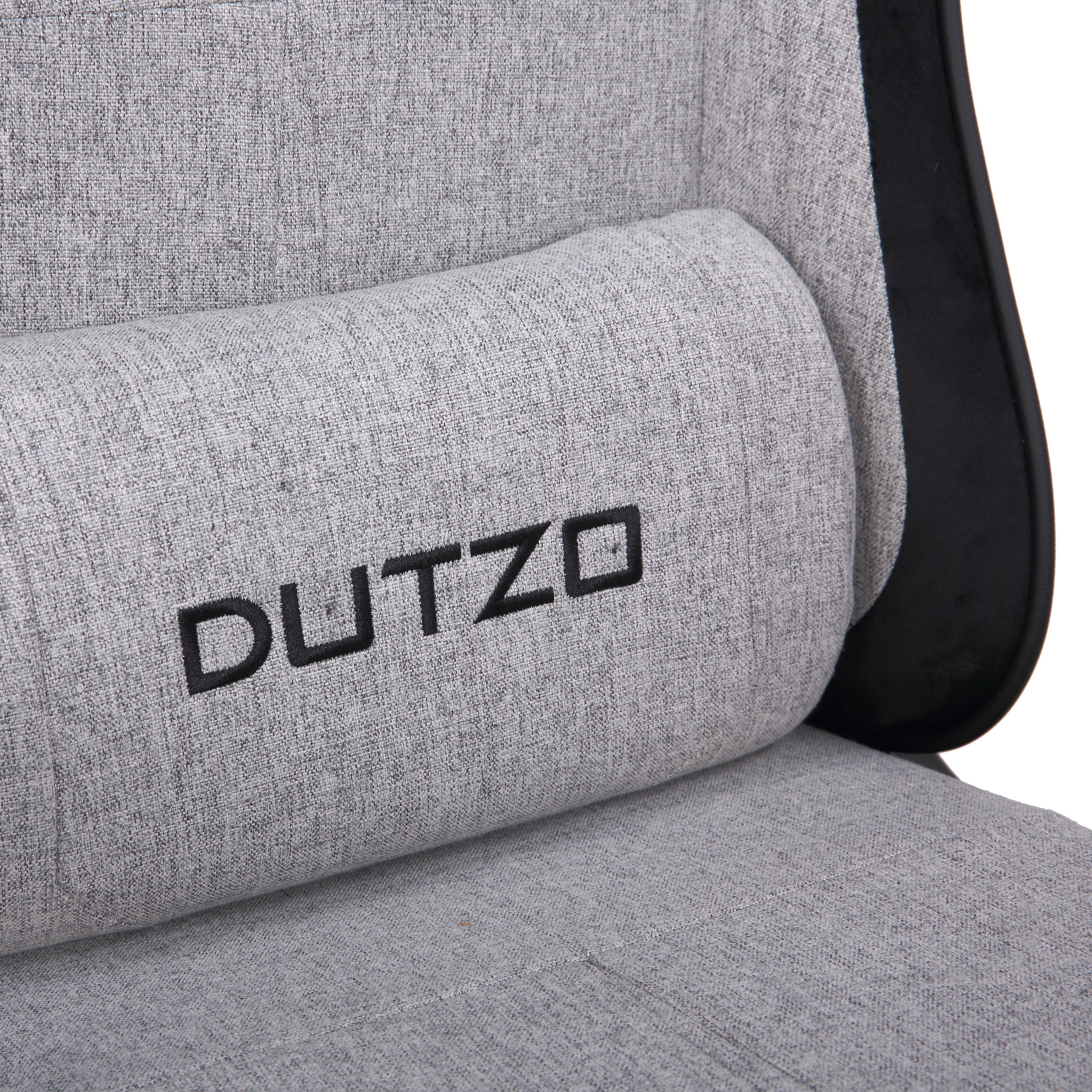 Gaming chair with great ergonomic design, including soft padded headrest and lower back pillows. The E-Sport V2 Fabric is the successor to the award winning E-Sport model and is now upgraded with a taller gas lift, so it remains as a smaller chair then our other DUTZO models, but keeps the same inspiration from racing chairs with ergonomically designed side edges for supporting your lower back region and shoulders, for better support we've included two pillows allowing you to find your ideal position. E-Sport chairs are sturdy built and ready for many hours gaming your favorite games as it's body is made with a solid metal skeleton, Fabric, double inner stitching, market leading class 4 gas lifts and black nylon base with 60mm wide wheels. E-Sport has 2 dimensional armrests, is tiltable with 30 degrees and the backrest can be angled 90 degrees, so you definitely find your own seat position for many hours of gaming or even a fast nap between gaming sessions! Height adjustable with 10 cm high gas cartridge (larger gas cartridges are available). The E-Sport is recommended for people up to 185 cm high and max 120 kg is supported.