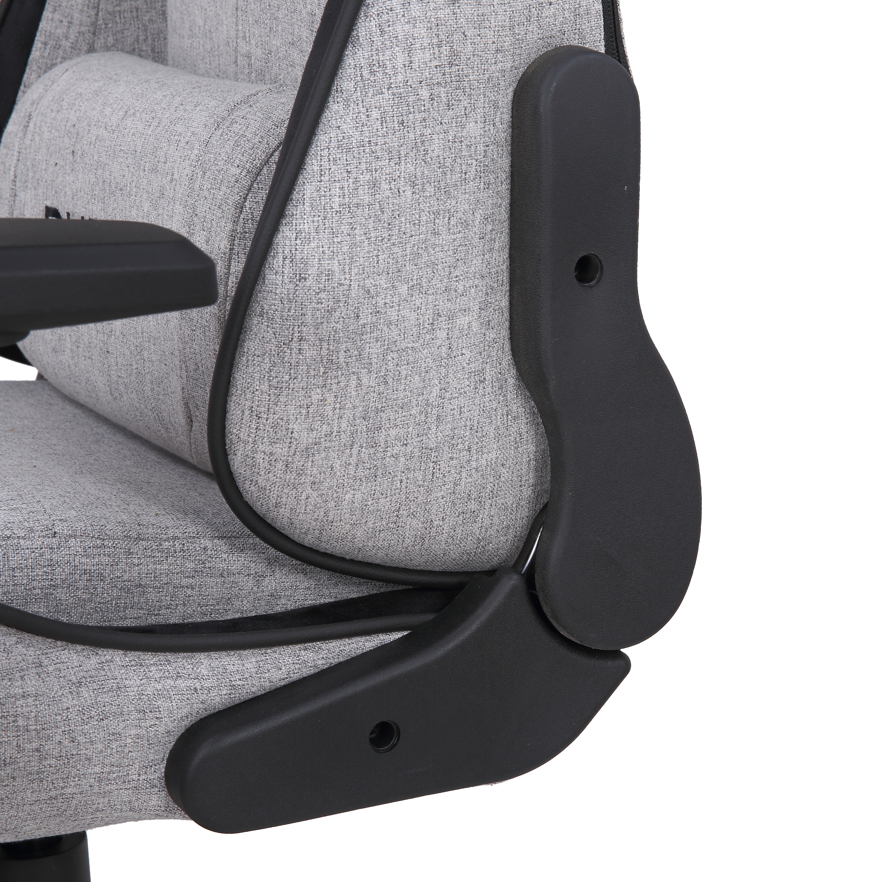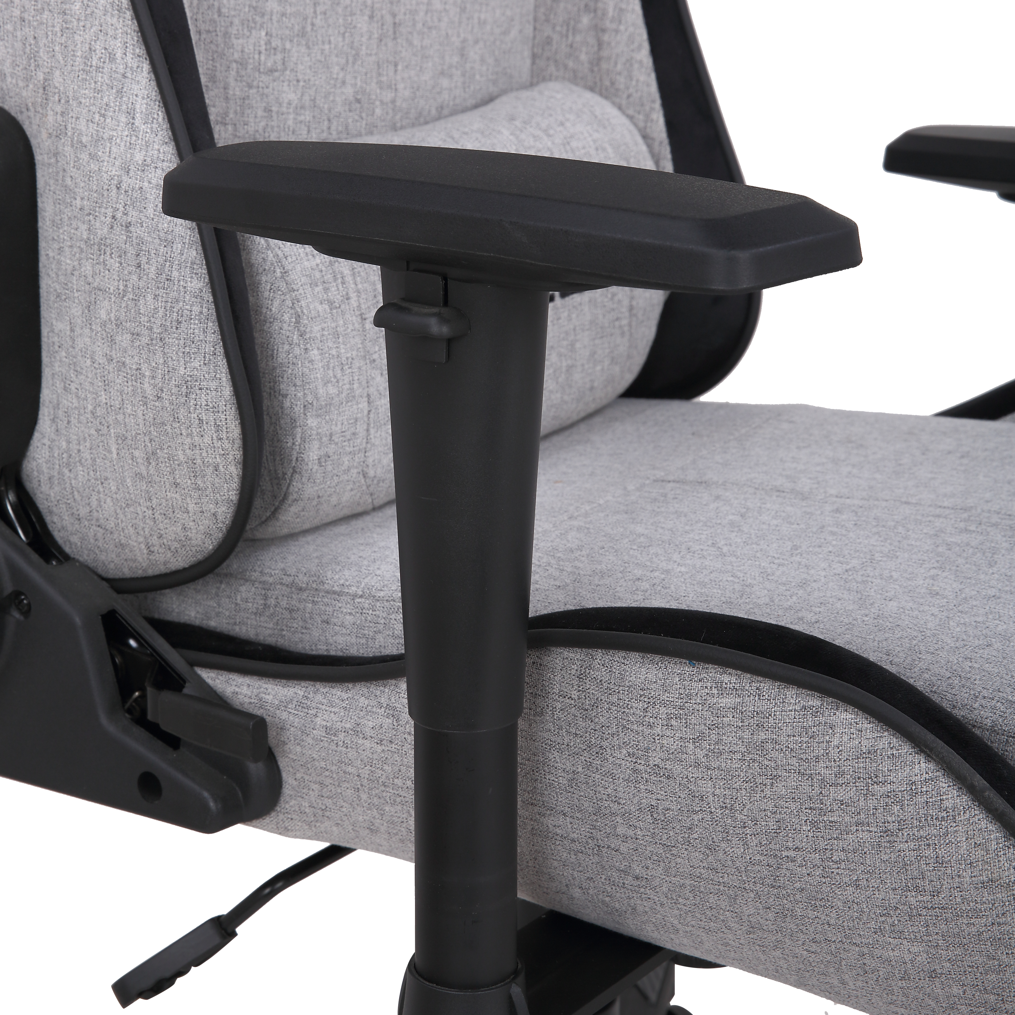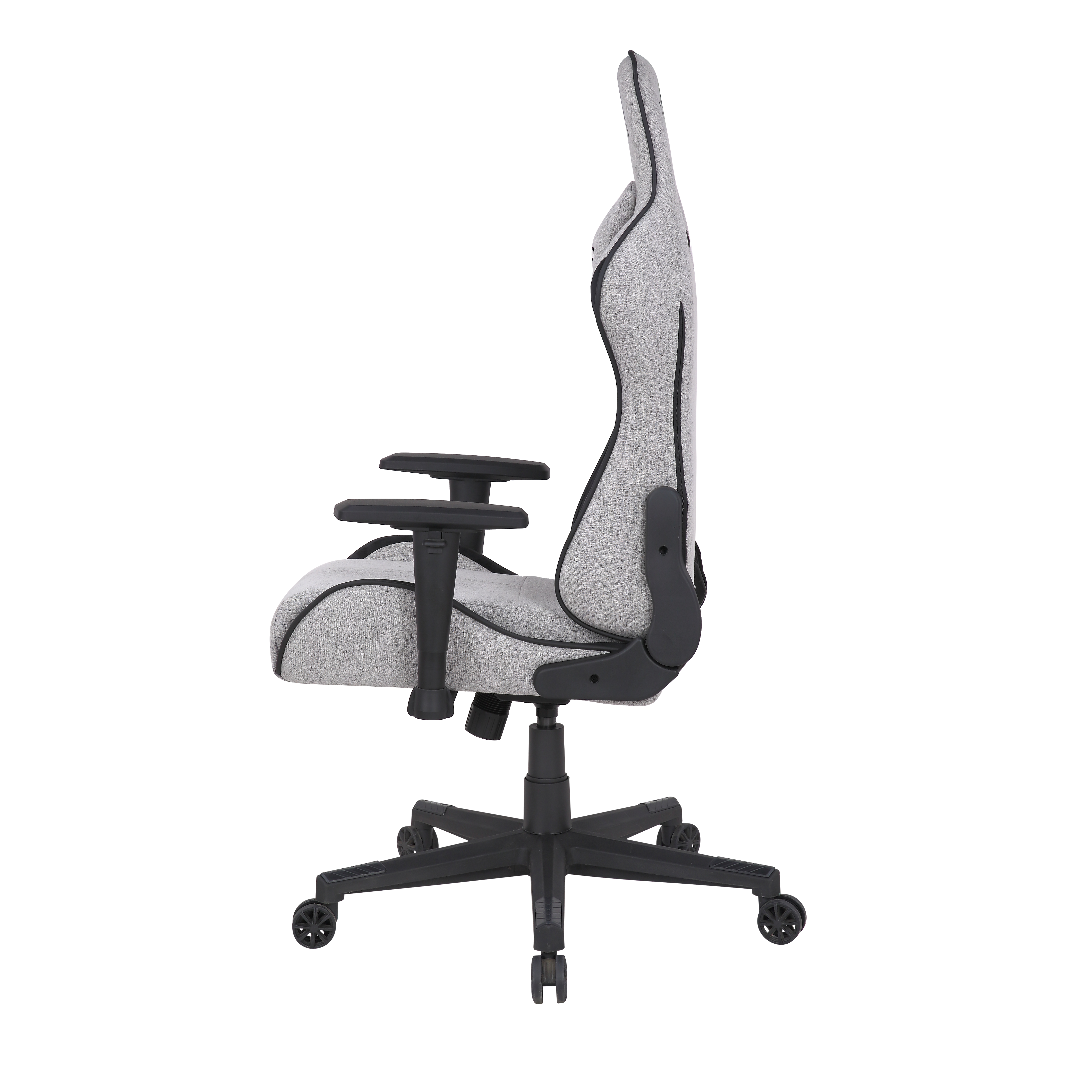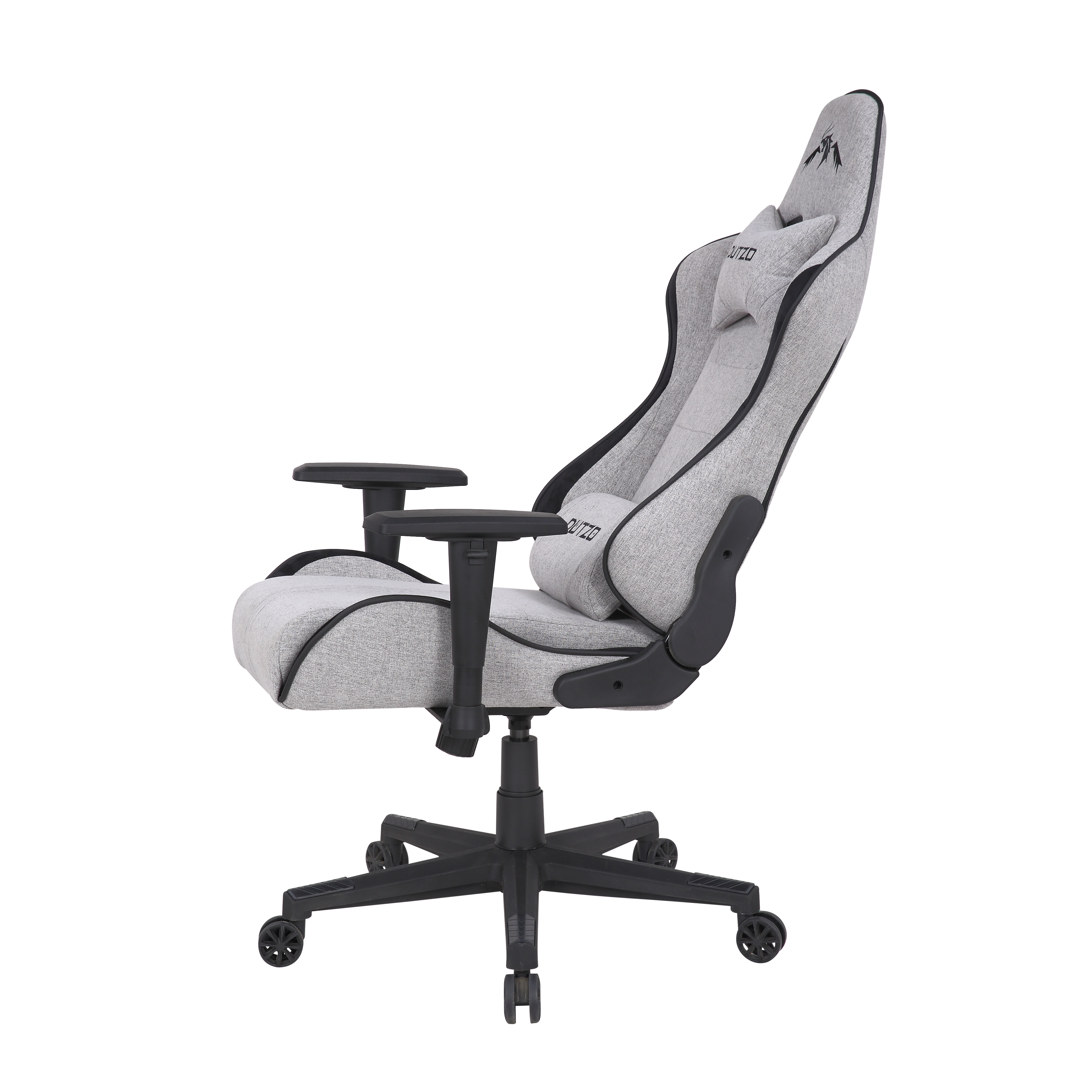 Gaming chair with great ergonomic design, including soft padded headrest and lower back pillows. The E-Sport V2 Fabric is the successor to the award winning E-Sport model and is now upgraded with a taller gas lift, so it remains as a smaller chair then our other DUTZO models, but keeps the same inspiration from racing chairs with ergonomically designed side edges for supporting your lower back region and shoulders, for better support we've included two pillows allowing you to find your ideal position. E-Sport chairs are sturdy built and ready for many hours gaming your favorite games as it's body is made with a solid metal skeleton, Fabric, double inner stitching, market leading class 4 gas lifts and black nylon base with 60mm wide wheels. E-Sport has 2 dimensional armrests, is tiltable with 30 degrees and the backrest can be angled 90 degrees, so you definitely find your own seat position for many hours of gaming or even a fast nap between gaming sessions! Height adjustable with 10 cm high gas cartridge (larger gas cartridges are available). The E-Sport is recommended for people up to 185 cm high and max 120 kg is supported.