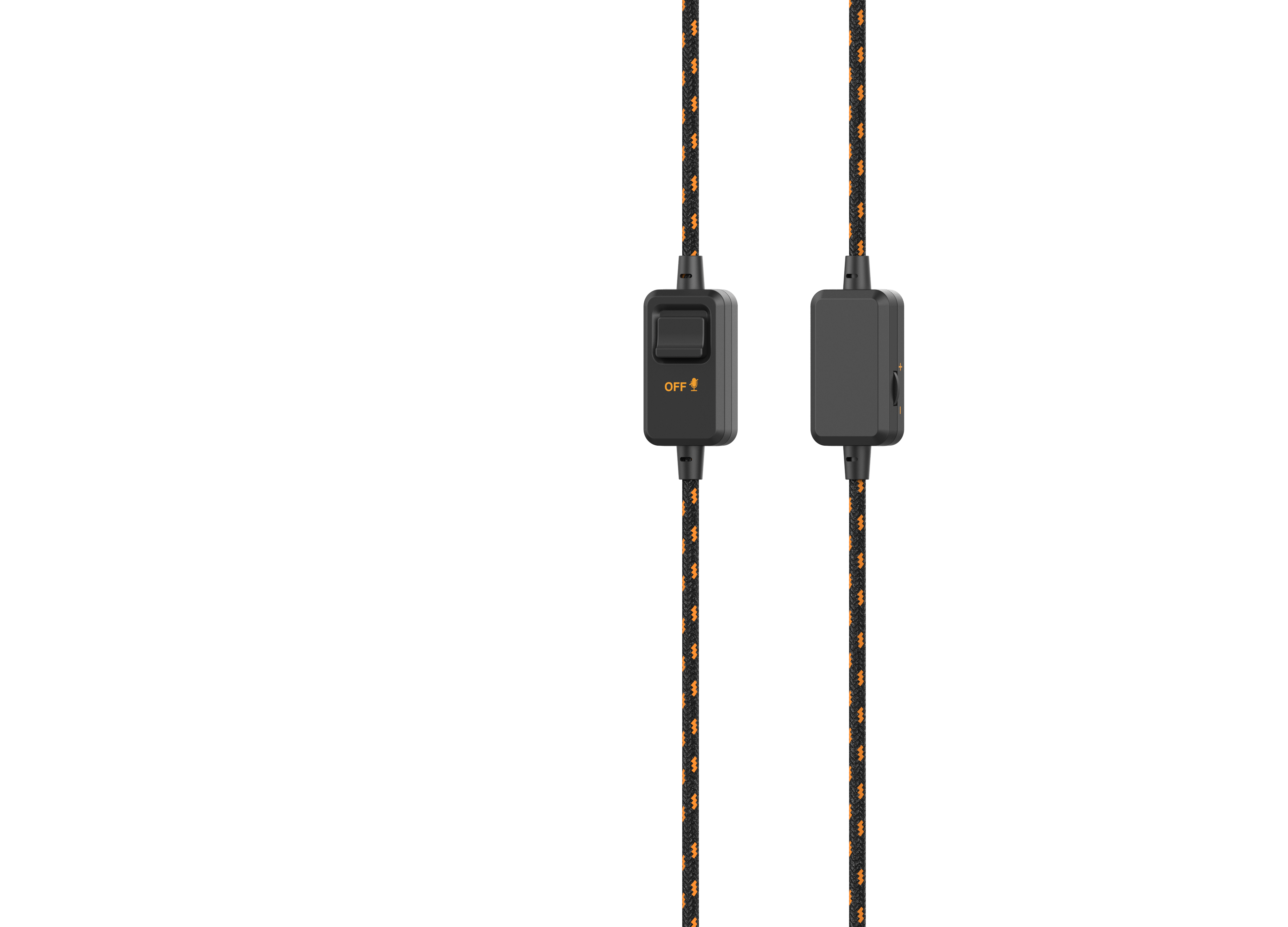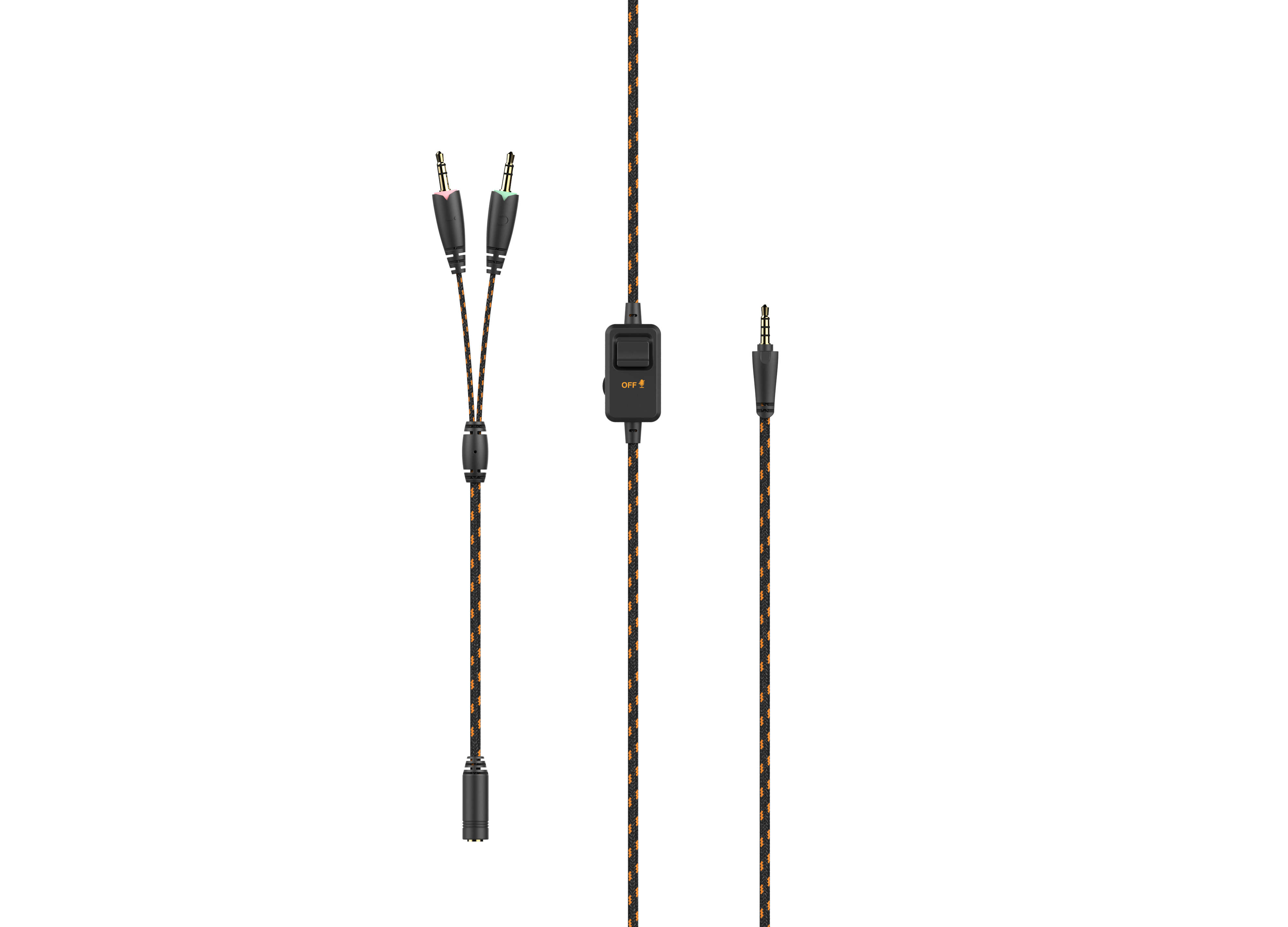 Gaming headset, full size, driver dimension 53 mm, 3.5mm mini-jack connector, sensitivity 100 dB, impedance: 32 ohm, frequency response 20 - 20000 Hz, detachable microphone, microphone frequency response 100 - 10000 Hz, sensitivity 58 dB, memory foam earpads, 1.2 meter cable with in-line controller and 1 meter extension cable with splitter to 2 x mini-jack connector, black / orange