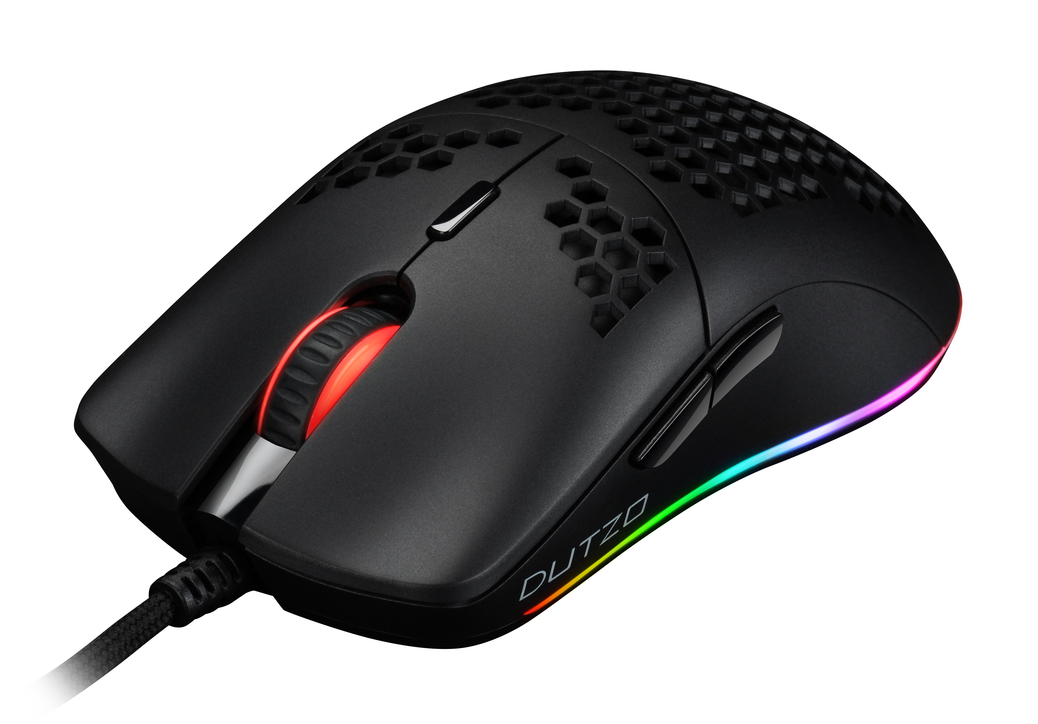 Gaming mouse, optical sensor - Pixart 3389, 6 programmable buttons, 400 - 16000 dpi settings, 125 - 1000 Hz update, 2 meter cable, USB, weight: 68 grams, size: 128,5mm x 67mm x 38mm, with lift of distance button (2 and 3 mm), additional pads included, skin to cover honeycomb shell included, water resistant coating, black with RGB light