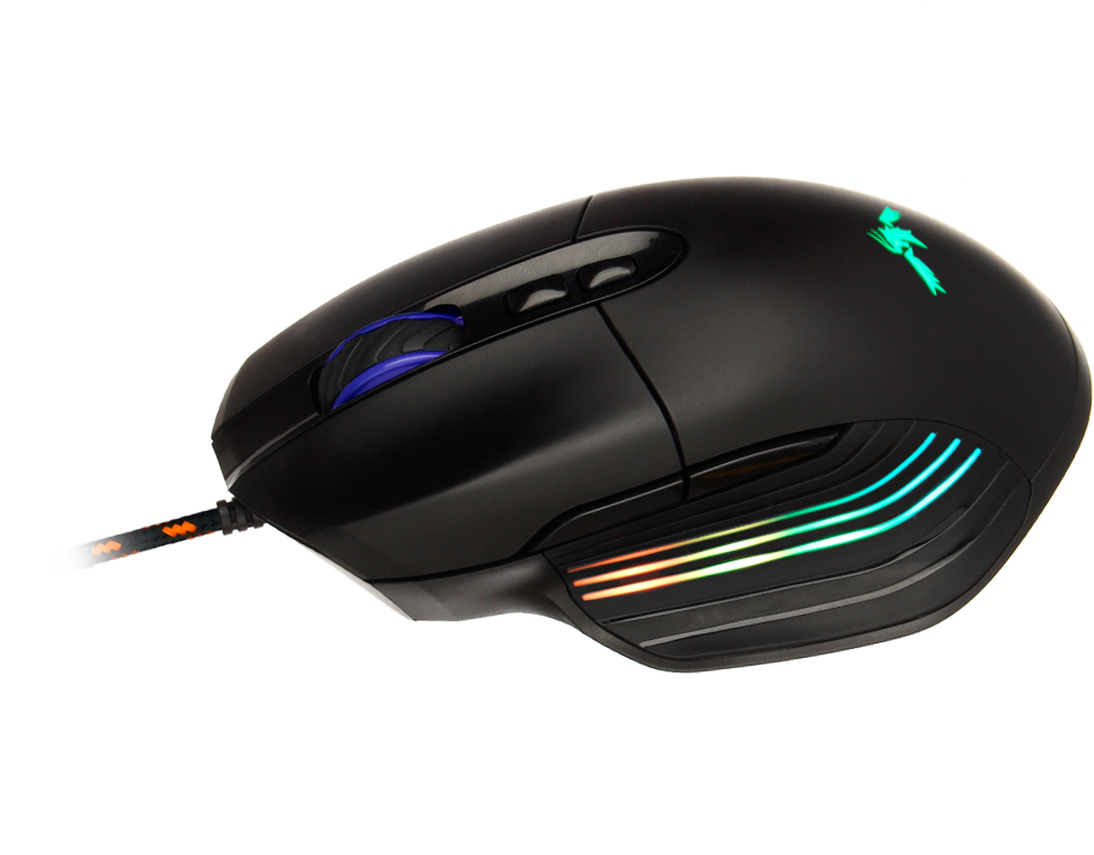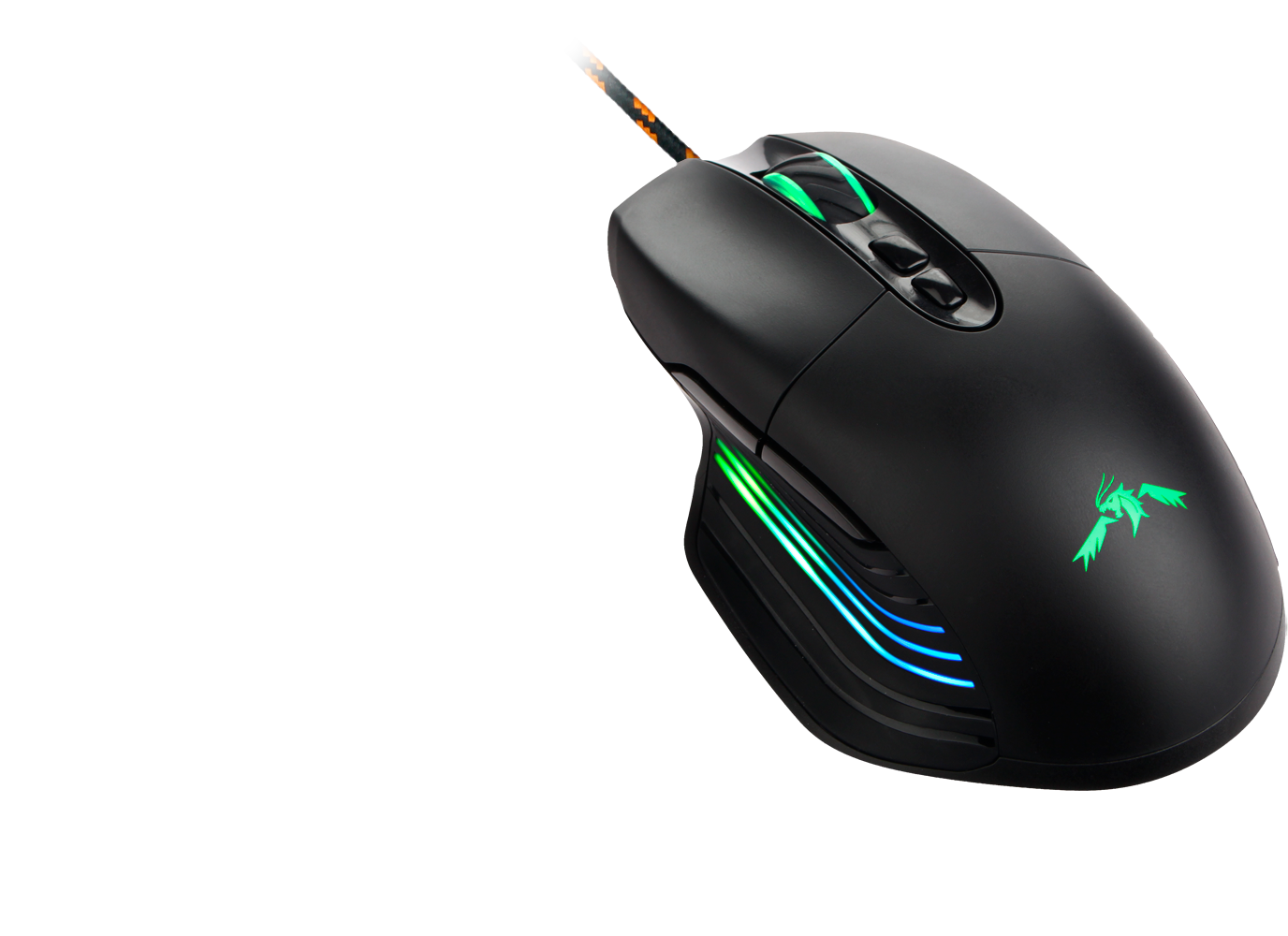Gaming mouse, optisk sensor - Pixart 3325, 7 programmable buttons, 200 - 5000 dpi settings, 125 - 1000 Hz changeable polling rate, 1.8 meter braided cable, USB connection, suitable for right handed use, weight: 83 black with RGB light