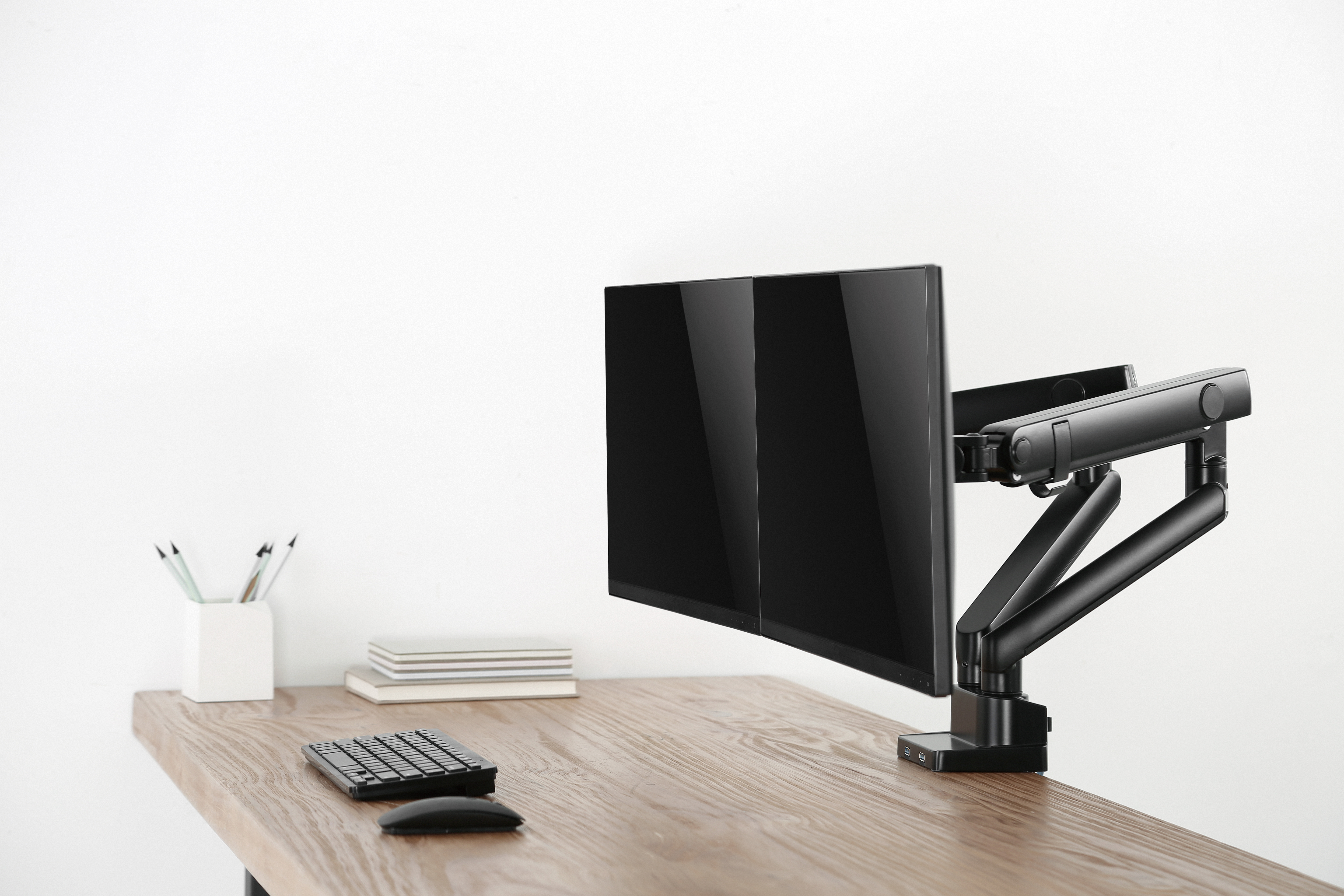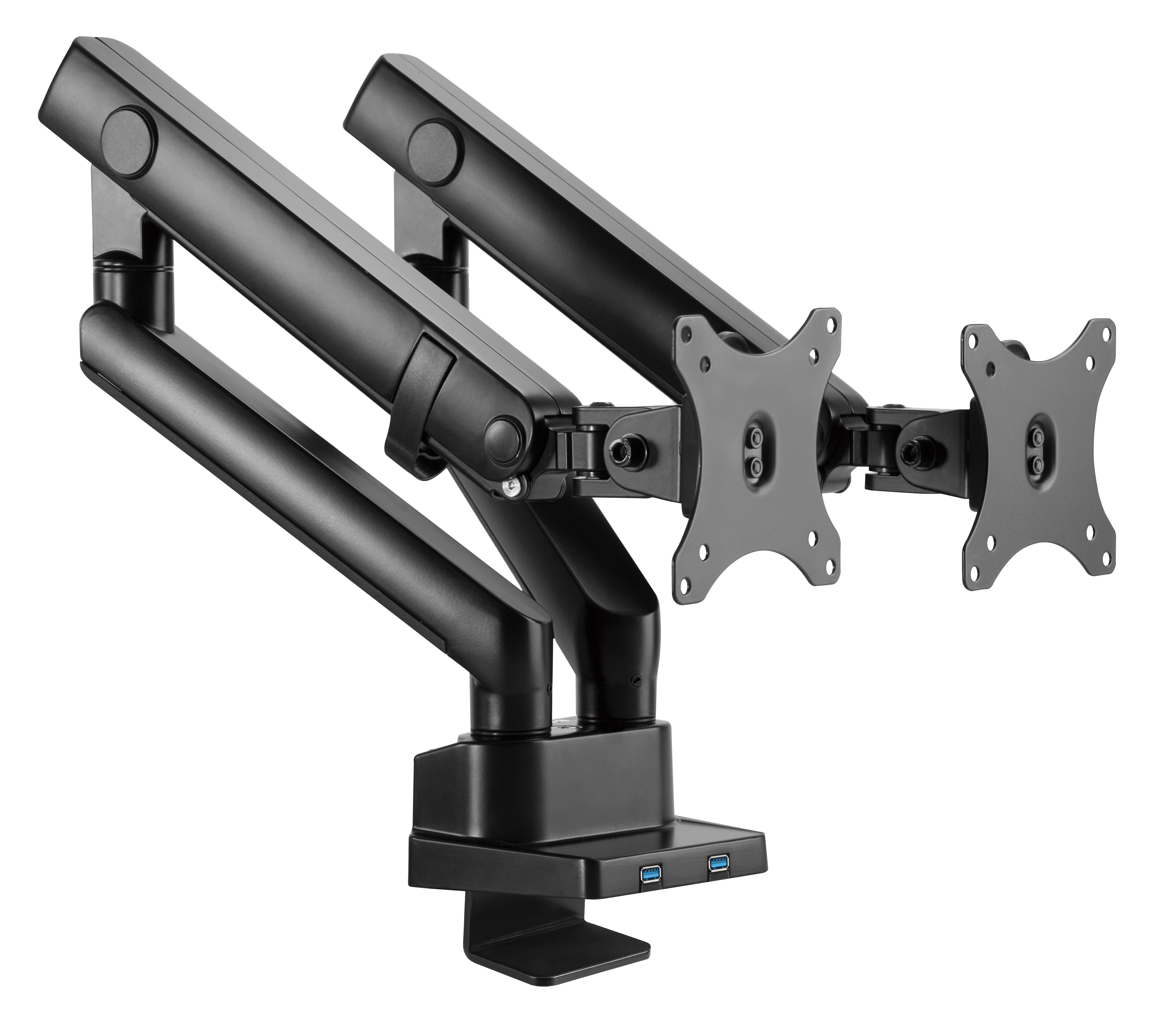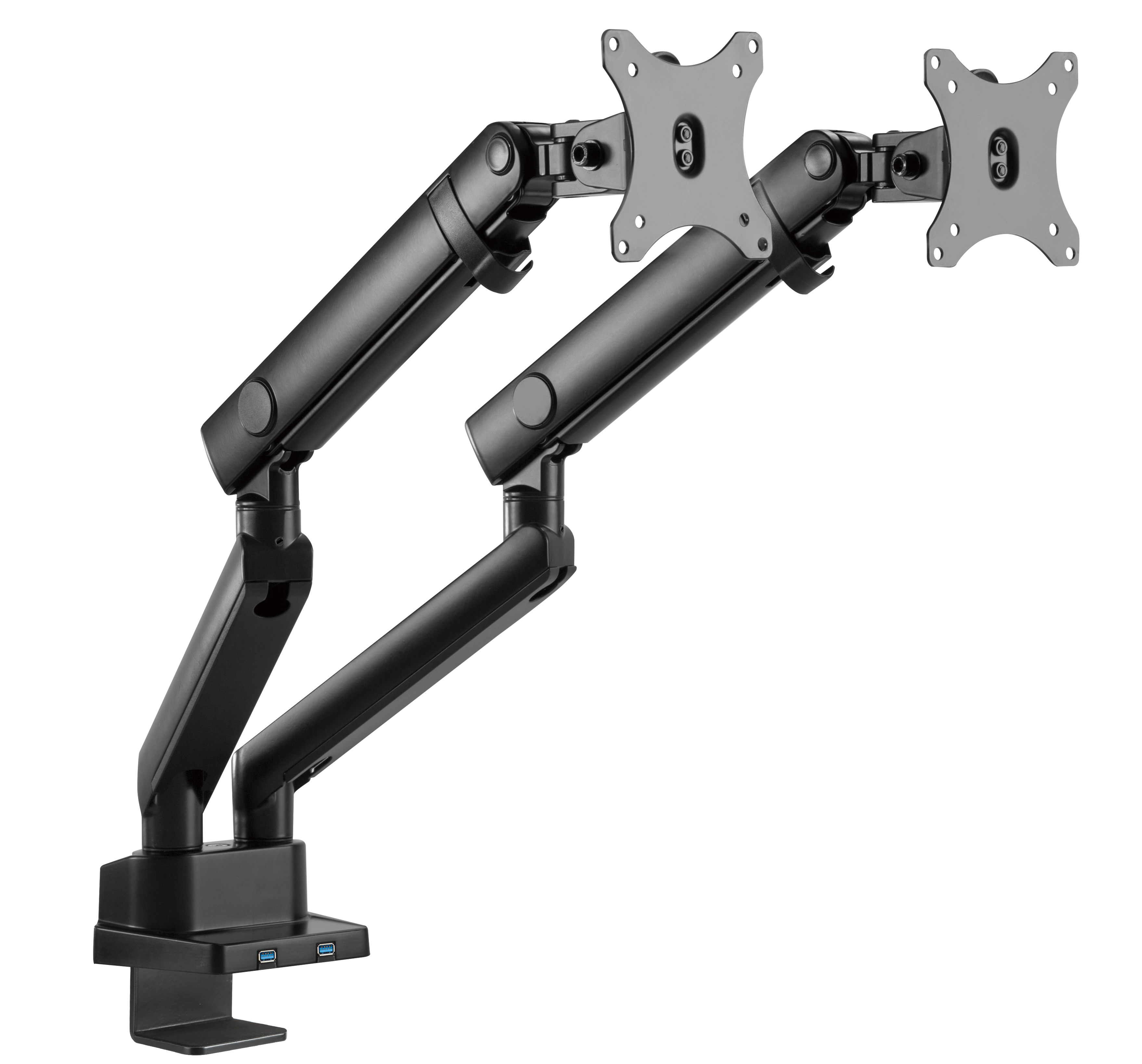 2 x USB ports - Table Mounted - Holds 2 monitors - up to 8 kg per screen