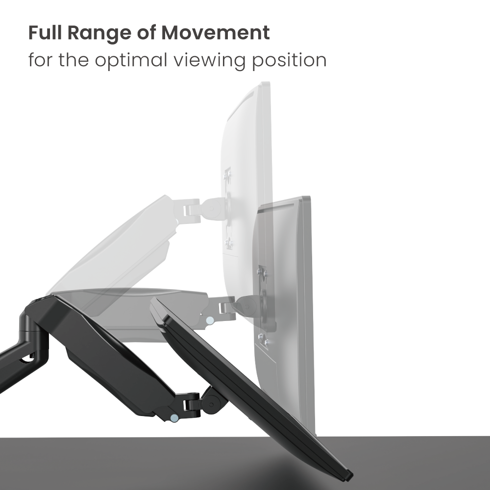 • Gas Spring Adjustment: Smooth and effortless height adjustment allows you to position your monitor with precision for maximum ergonomic benefit.
